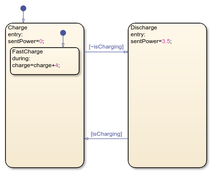 In this example, you use child states to model the variable charging rates in a rechargeable battery system.