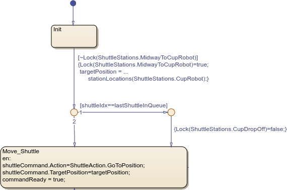 chart models the status of the five shuttle stations as Boolean values in the local vector Lock