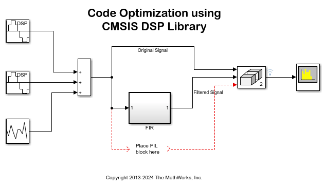 This example shows you how to use the ARM Cortex-M CRL table to generate code optimized for the Cortex-M4 processor present on the STM32F4-Discovery board. You will learn how to use PIL to get execution profiling measurements and observe the performance improvements obtained while using the ARM Cortex-M CRL table.