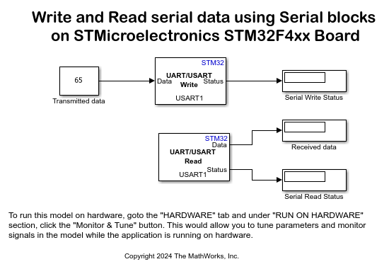 1. Open the Read the serial data using serial block on STMicroelectronics Nucleo board model.