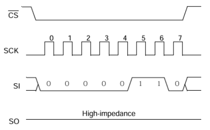 Drive CS line low > Send 0x02 (WRITE) > Send 16-bit Address > Send Data (Max 16 bytes) > Drive CS line high after data byte is transferred