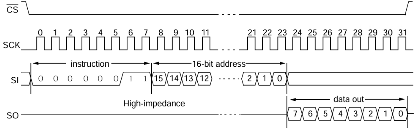 0x03(READ).Send 16-bit address (MSB then LSB).