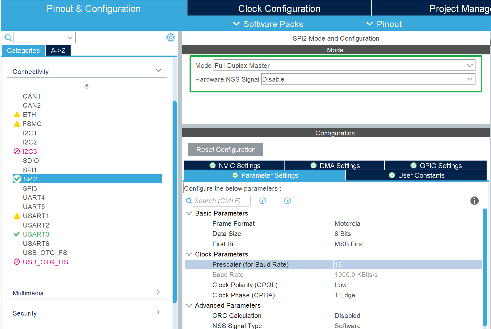 2. Under SPI2 Mode and Configuration: