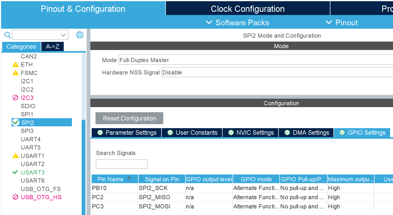 1. On the Pinout & Configuration tab under Categories, select SPI2.