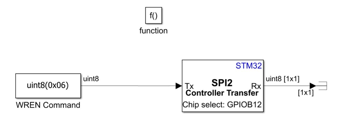 Use SPI Transmit block to send Write Enable command (0x06).