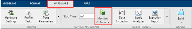 On the Hardware tab of the Simulink toolstrip, click Monitor & Tune to monitor signals and tune parameters.