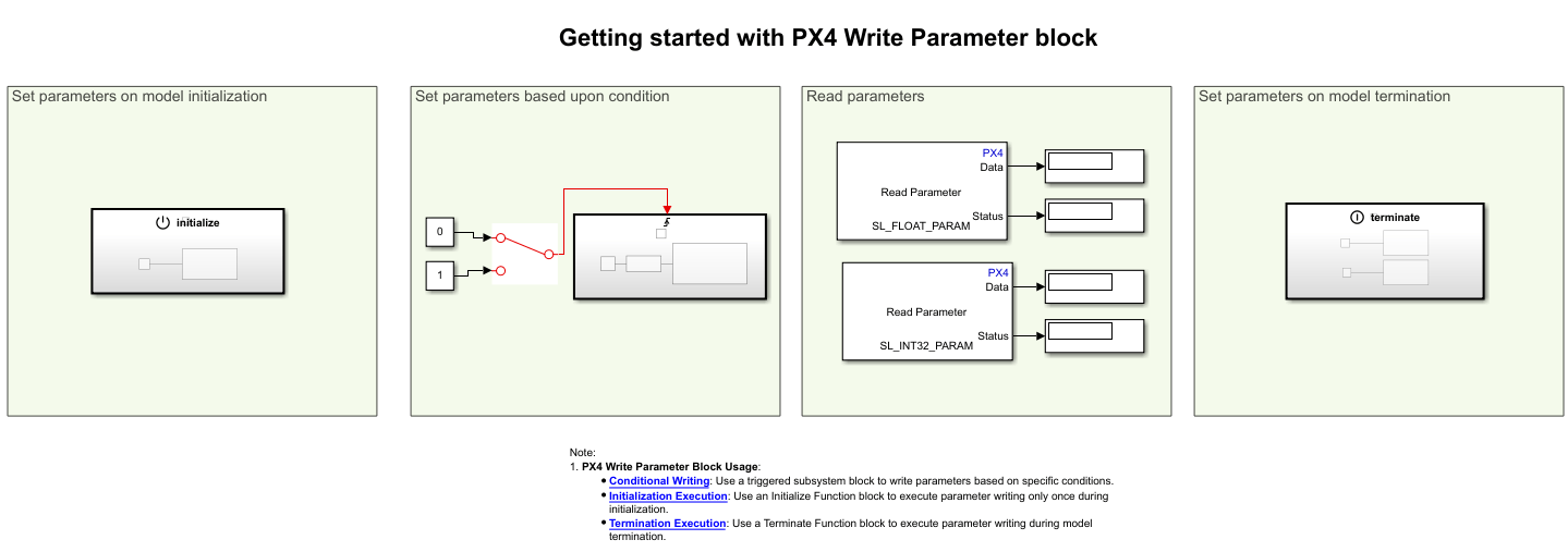 In this example, the PX4 Write Parameter Block is used for: