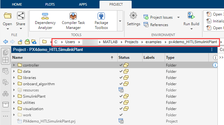 This example uses PX4demo_HITLSimulinkPlant.prj project which includes two Simulink models: the controller model (Quadcopter_ControllerWithNavigation.slx) and the UAV dynamics model (UAV_Dynamics_Autopilot_Communication.slx).