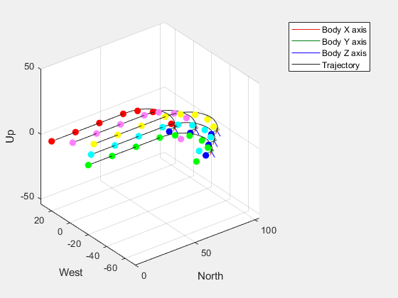 Figure UAV Animation contains an axes object. The axes object with xlabel North, ylabel West contains 26 objects of type patch, line, scatter.