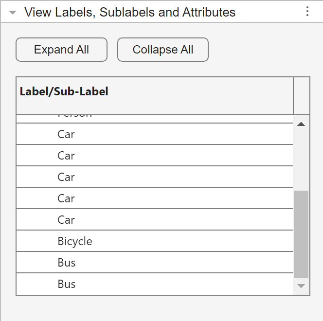 You can view a list of the generated rectangular ROI labels in the View Labels, Sublabels, and Attributes bottom-right panel of the app.