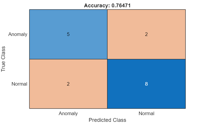 Evaluate the anomaly detector by calculating performance metrics using the evaluateAnomalyDetection function. The evaluateAnomalyDetection function calculates several metrics that evaluate the accuracy, precision, sensitivity, and specificity of the detector for the test data set.