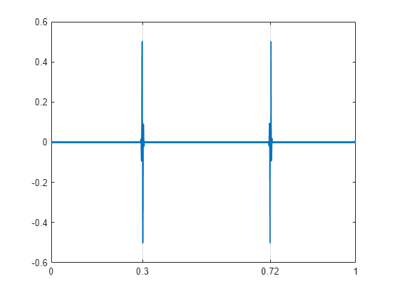 wt = dddtree('ddt',x,1,'filters1'); wt.cfs{2} = zeros(1,512); xrec = idddtree(wt); plot(t,xrec,'linewidth',2) set(gca,'xtick',[0 0.3 0.72 1]) set(gca,'xgrid','on')