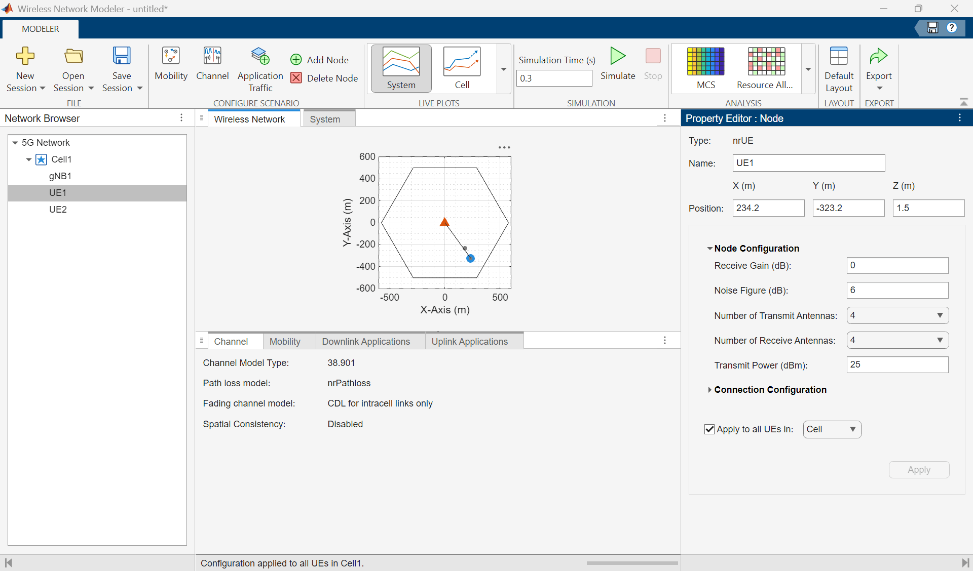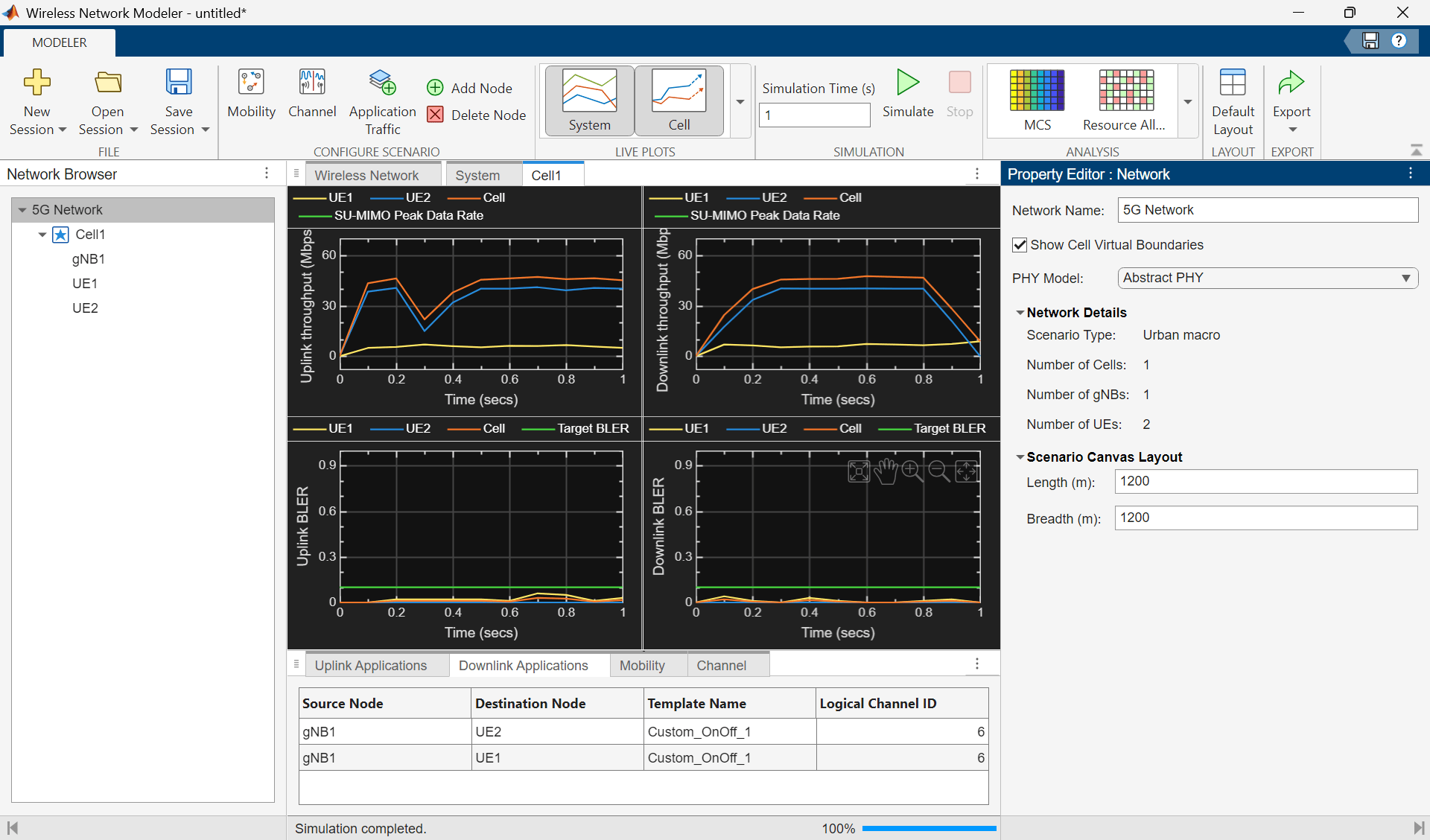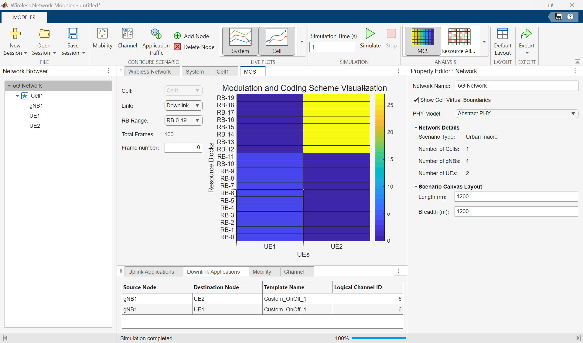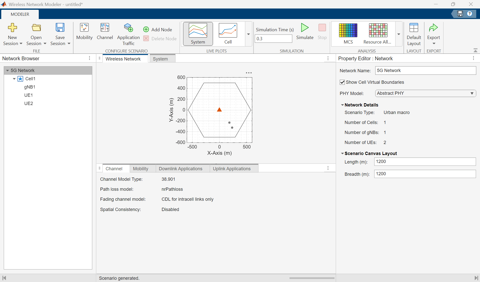 The Wireless Network Modeler app enables you to model and analyze the performance of both 5G and wireless local area networks (WLAN). Modeling 5G networks requires 5G Toolbox™, while modeling WLAN networks requires WLAN Toolbox™.
