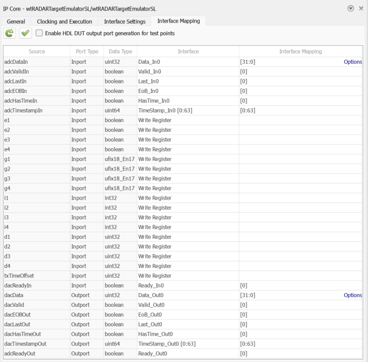 In the HDL Code tab, click Target Interface to open the IP Core editor.