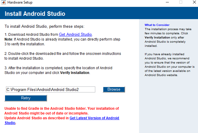 After installation of Android Studio, please run the hardware setup again. Let us know if you face any issue.