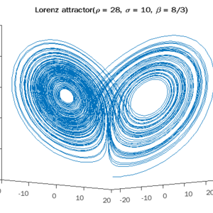 title(['Lorenz attractor' sprintf('(\\rho = %u, \\sigma = %u, \\beta = %u/%u)',r,s,bN,bD)]);
