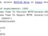 This simple code shows how the Monte Carlo Chronological method works. This example is intended to be for educational purpose, generating an artificial history data vectors of a single component modeled in a two state Markov chain model and exponentially distributed. You just need to enter the number of experiments to determine the simulation time-span (recommended to be above 1000 experiments)and the MTTF and MTTR of the repairable component.