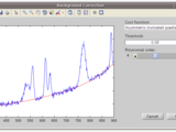 This program estimates the background (or baseline) of optical spectra by the polynomial minimizing a cost function. If the cost function was quadratic, the solution is the least squares estimation, which is not appropriate in this problem. Instead, we need to use of non-quadratic cost function such as the symmetrical Huber function, the symmetrical truncated quadratic or their respective asymmetrical shape.