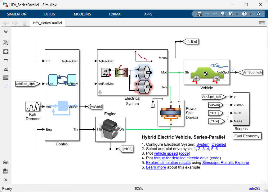 Steve Miller (2025). Hybrid-Electric Vehicle Model in Simulink (https://github.com/mathworks/Simscape-HEV-Series-Parallel/releases/tag/25.2.5.0), GitHub. Retrieved .