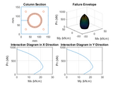 Column section, failure envelope, interaction diagrams in x and y directions are plotted in one figure.