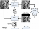 Several attacks (signal degradations such as noise, dithering, filtering, cropping, lossy JPEG compression) on marked image were conducted. Attacked images are saved and the watermark is extracted.