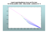 The program computes the liquid-liquid equilibrium diagrams for a type I ternary system based on the NRTL model. The ternary mixture: water-ethylacetate-acetone is an example of type I systems. The equilibrium diagram is obtained at a temperature of 288.15 K.