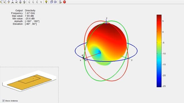 Import measured or simulated radiation pattern data from text, CSV, or MSI Planet antenna files (.MSI or. PLN) to excite backing structures or integrate pattern data into RF systems. Visualize far- and near-field data with 3D or polar plots. Use antenna impedance and S-parameters to design matching networks (with RF Toolbox), and design distributed matching networks (with RF PCB Toolbox).
