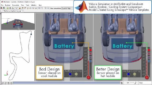 Simscape Battery provides design tools and parameterized models for developing battery systems. You can tune battery cell behavior to match measured data, run virtual tests of battery pack architectures, design battery management systems, and evaluate battery system behavior across normal and fault conditions.