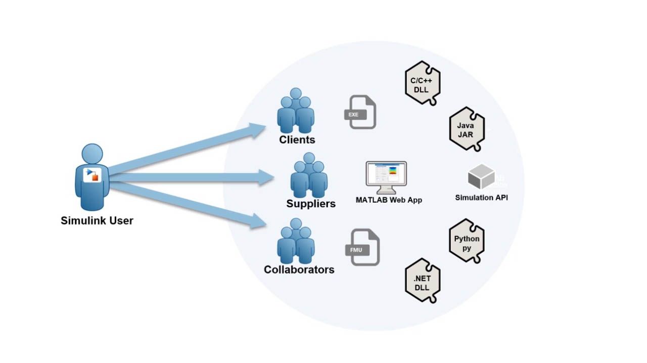 Integrate simulations into a wide variety of production enterprise applications accessed by large audiences. With MATLAB Compiler SDK you can package your Simulink simulation into a language-specific software component such as a C/C++ shared library, Java JAR, Python package, or .NET DLL. Use MATLAB Production Server to host simulations that can be invoked from enterprise applications using C/C++, .NET, Java, Python, or RESTful interfaces.