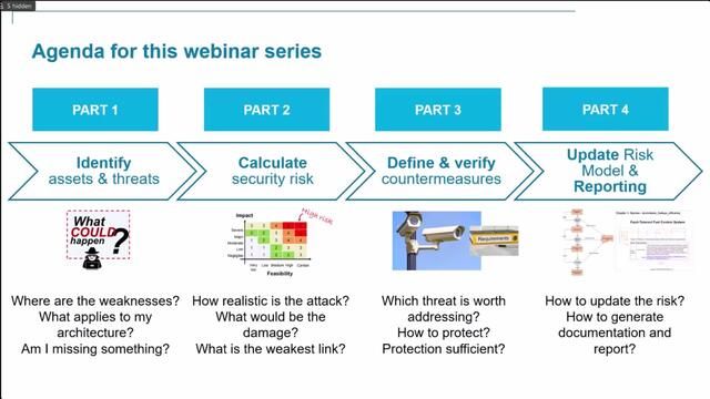 Build or re-use architectural models to identify assets and discover threats that could apply to your system. Estimate the feasibility, impact, and risk of attacks and receive feedback where information is missing. Use dominance analysis to focus on the driving risk factors and validate your risk treatment decisions. Define countermeasures and allocate security goals to your architecture to share the security requirements with your engineers, and to track implementation status. See the impact of changes and keep risk data and models consistent via traceability between architecture, risk data, and countermeasures.