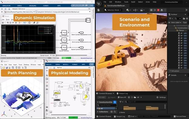 With this virtual testbench, you can use the combination of high-fidelity physical modeling, kinematic design, and photorealistic virtual simulation to refine and validate advanced control, automation, and autonomous algorithms for offroad vehicles, ensuring their reliable performance before deployment.