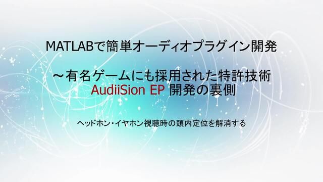 MATLABで簡単オーディオプラグイン開発~某有名ゲームにも採用された特許技術 AudiiSion EP 開発の裏側